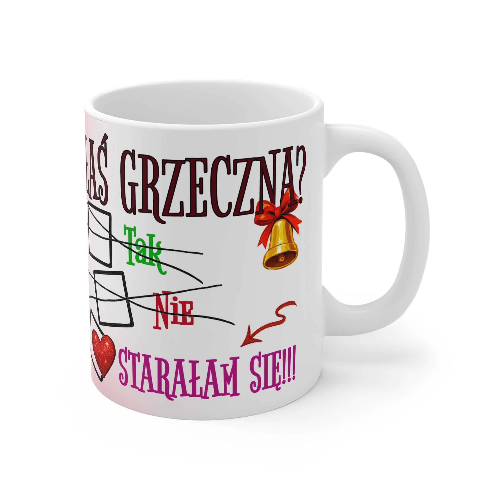 Spraw, by te Święta były pełne śmiechu i uroku – zamów kubek „Byłaś grzeczna?” już dziś i pij swoją ulubioną kawę z uśmiechem!