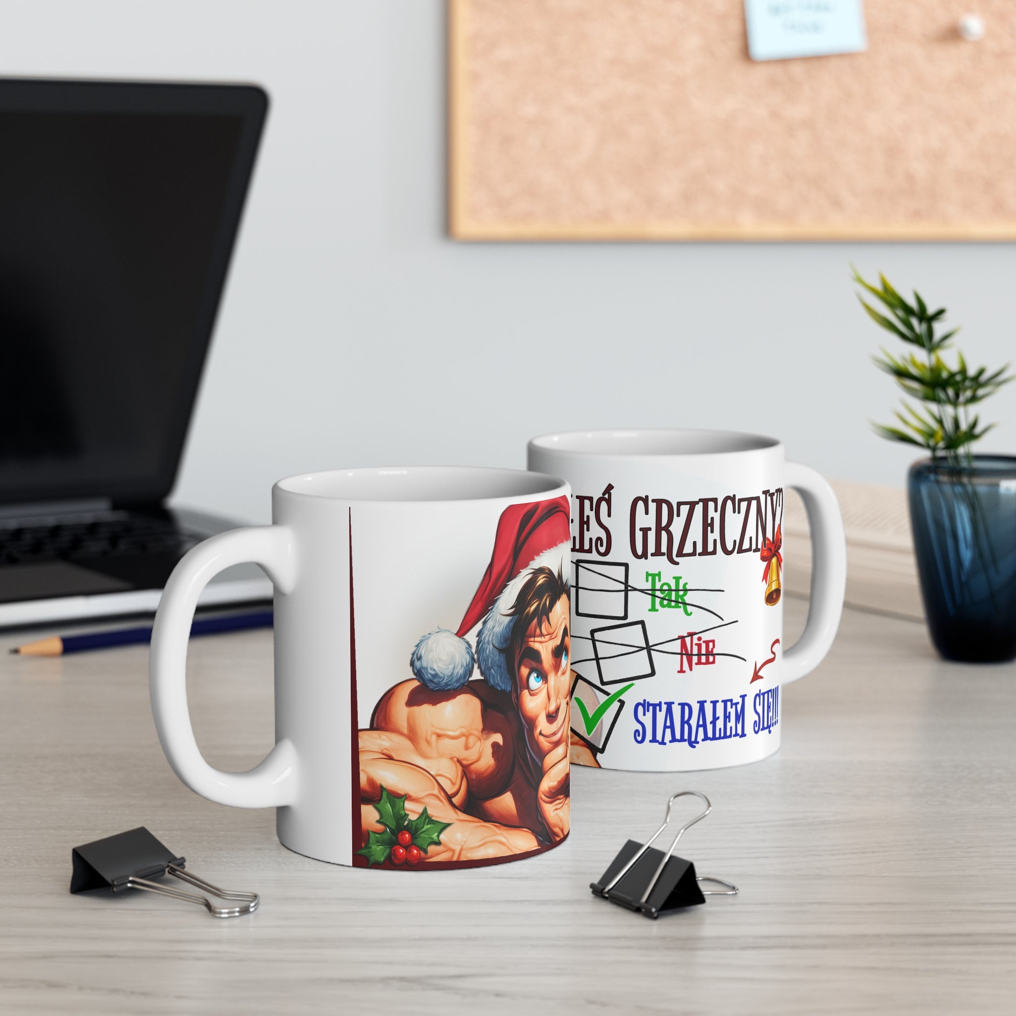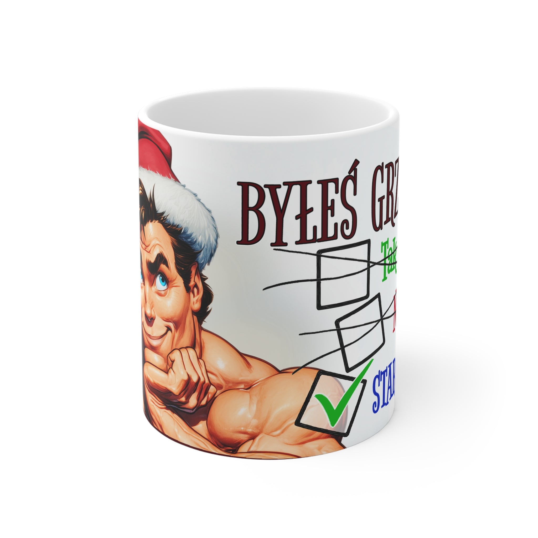 Rozkręć świąteczny klimat z humorem dzięki kubkowi „Byłeś grzeczny?”! 😄 Ten zabawny kubek z muskularnym Mikołajem to idealny pomysł na prezent dla niego – łączy świąteczny urok z nutką żartu i dystansu.